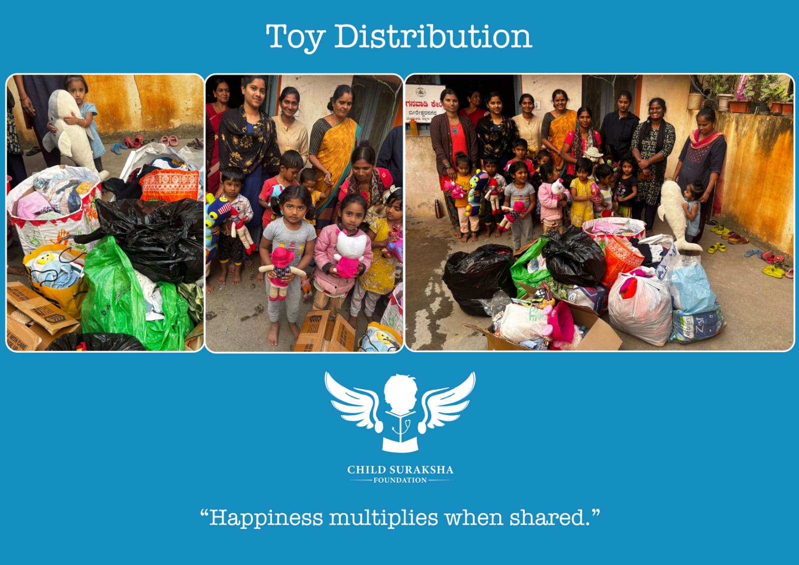 Distributed clothes, groceries, and toys